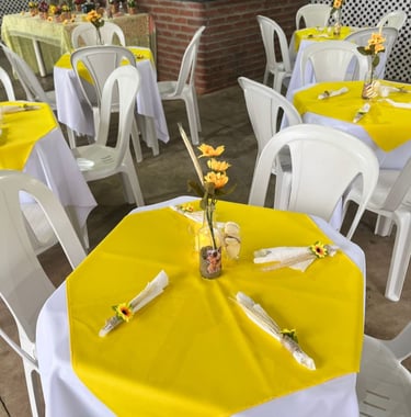 TRABALHAMOS COM LOCAÇÃO DE MESAS E CADEIRAS PARA FESTAS E EVENTOS EM GERAL.